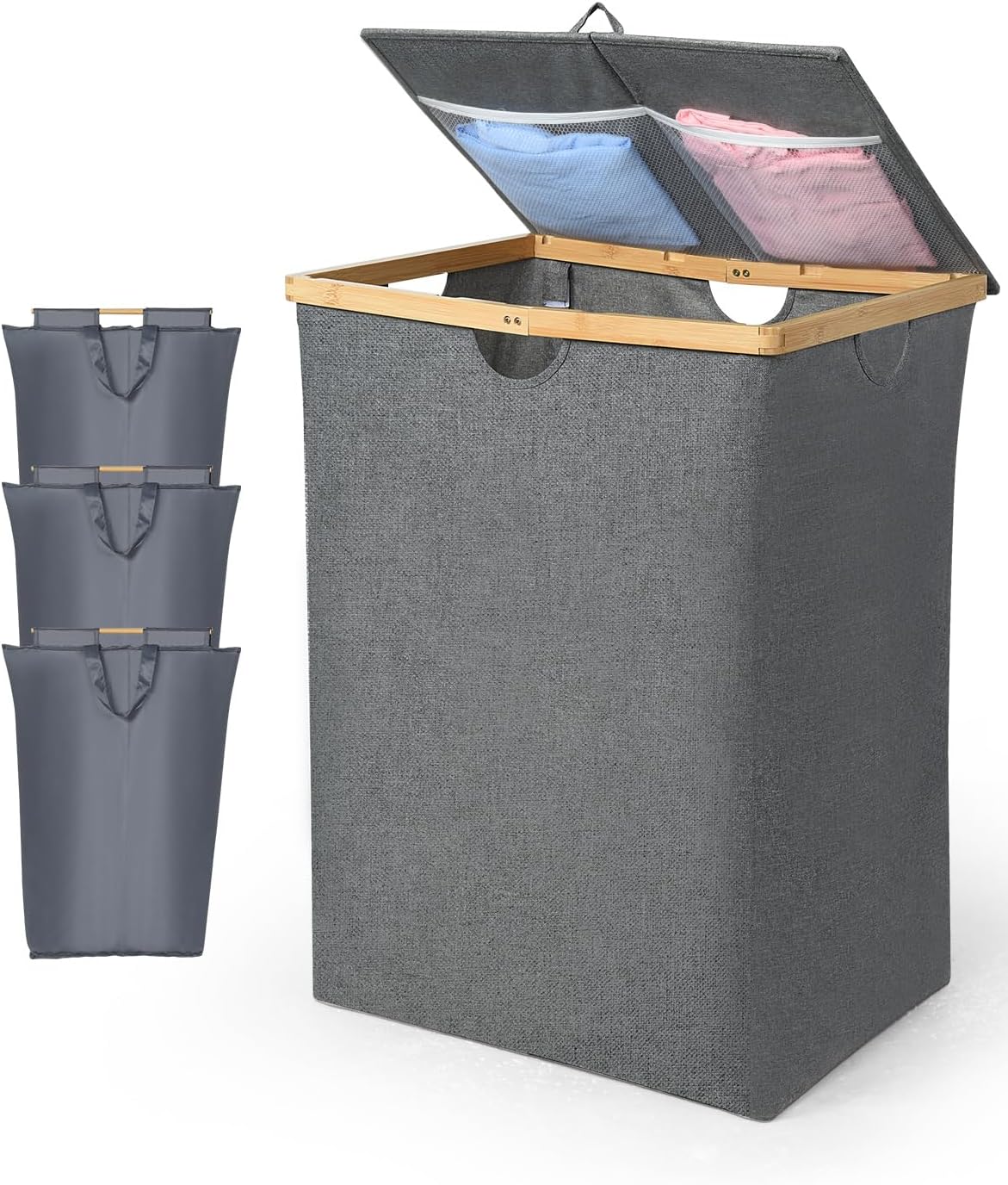 3-Section Laundry Hamper With Lid