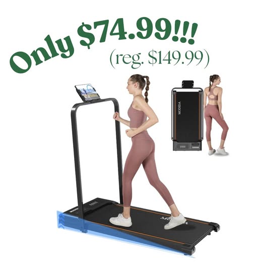 Awesome deal on this 3-in-1 under-desk treadmill that lets you walk, jog, or add incline…it even has a remote and LED screen to track stats.