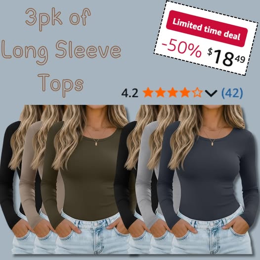 These basic long sleeve tops are great for layering underneath a flannel, jacket or perfect by themselves!!! Snag a 3pk for 50% off!!